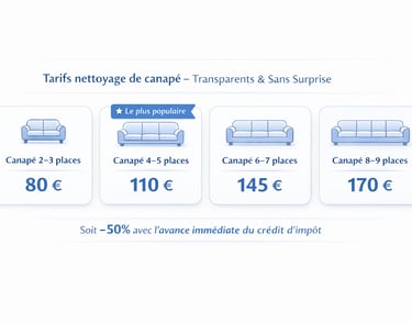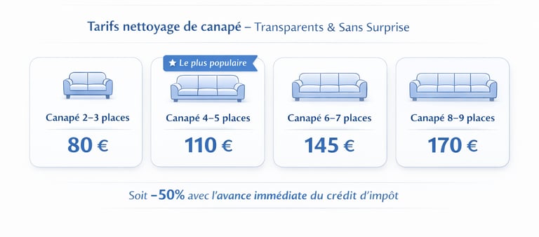 Nous proposons des tarifs simples et adaptés à la taille de votre canapé :